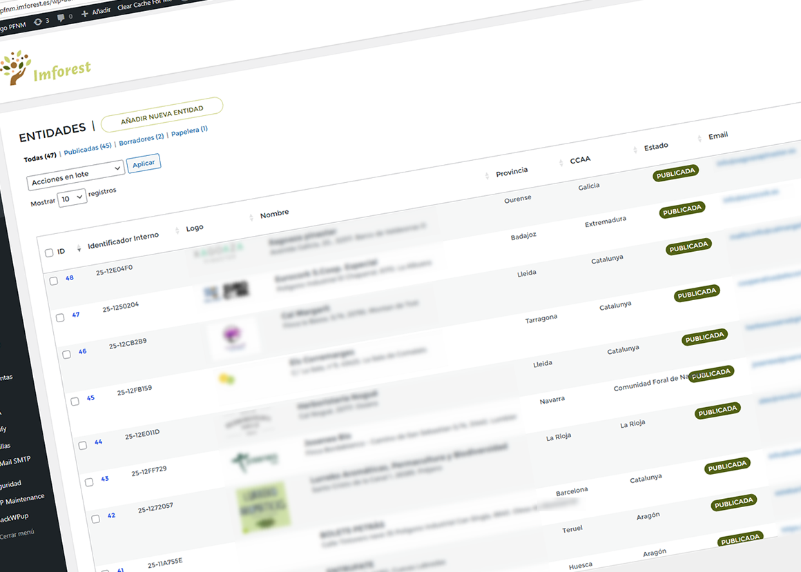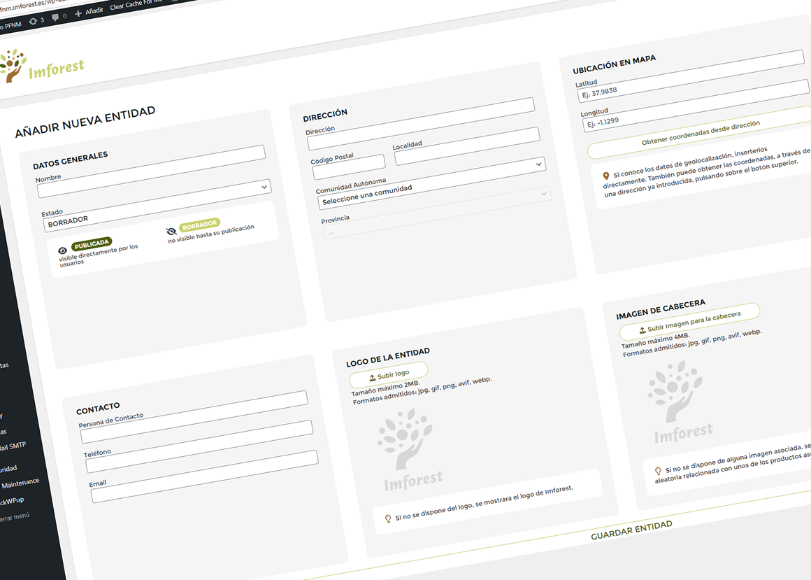 «IMFOREST – Plataforma de PFNM de Bosques Sostenibles – GESTIÓN DE ENTIDADES» v0.0.5